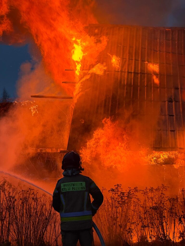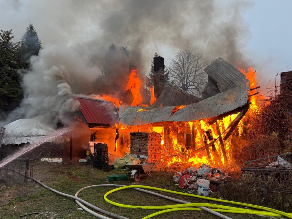 Jak informuje kpt. Łukasz Aleksandrowicz, po przybyciu pierwszego zastępu na miejsce, cały budynek był już objęty ogniem. Z informacji przekazanych przez właściciela wynika, że dom był niezamieszkały – w środku nie przebywały żadne osoby i nikt nie został poszkodowany.