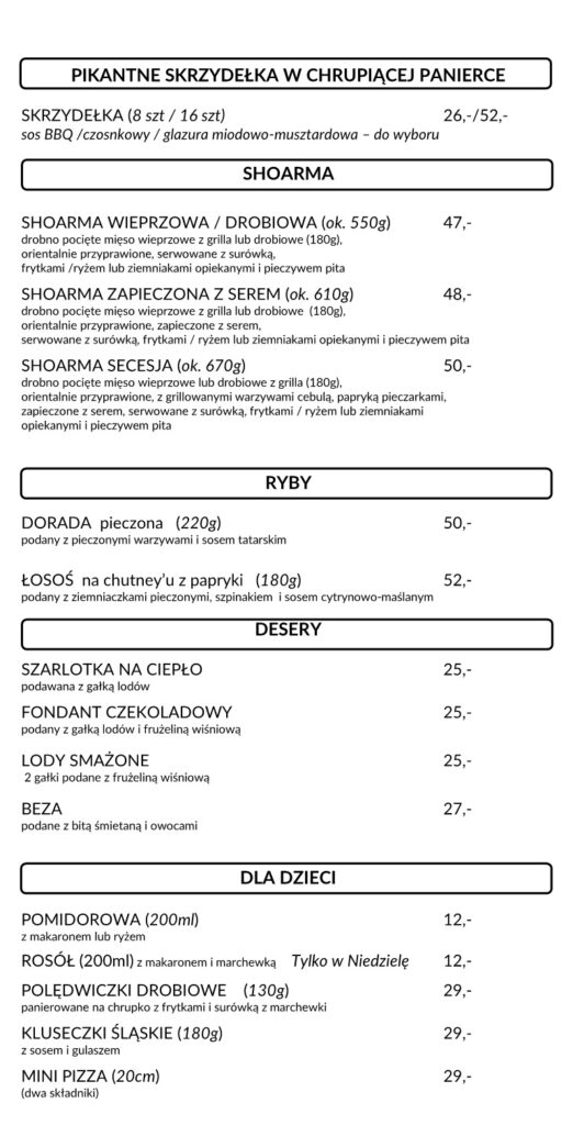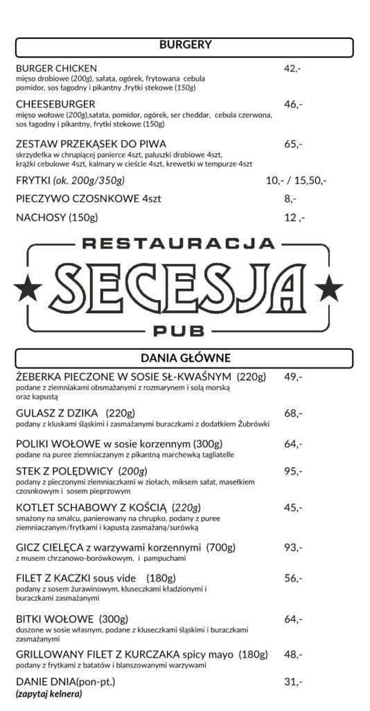 Secesja Zduńska Wola menu